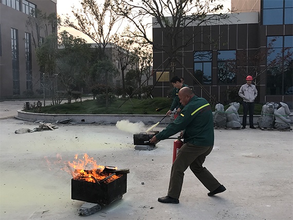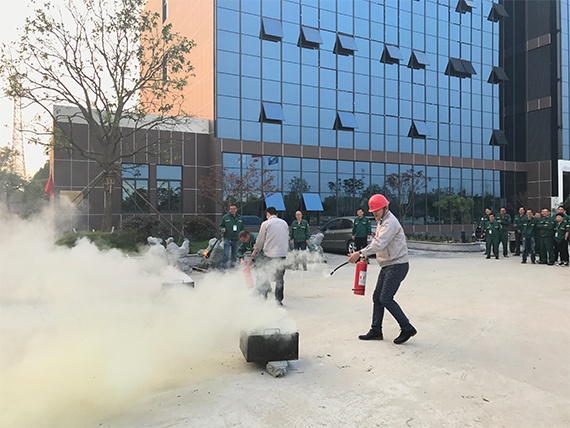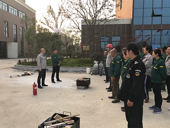 本次消防演習(xí)總指揮和副總指揮分別由公司王總和余總擔(dān)任。演習(xí)一開(kāi)始,余總安排員工代表們分部門(mén)排列,王總給大家示范指導(dǎo)如何使用滅火器。全體員工身穿工作服,認(rèn)真學(xué)習(xí)滅火器使用方法和要點(diǎn)。